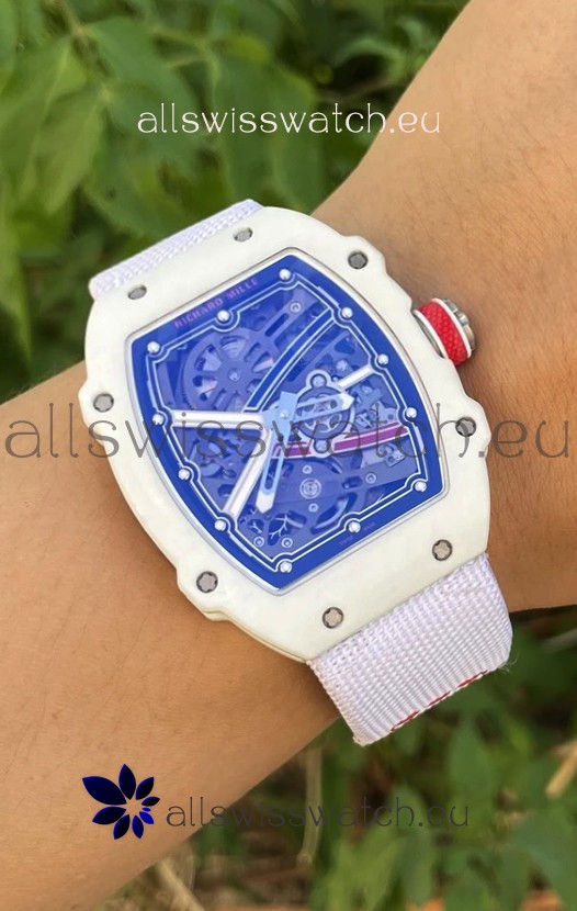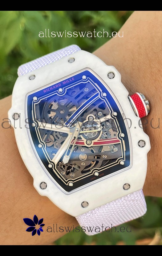 Richard Mille Super Clone RM67-02 Alexis Pinturault White Quartz TPT 37 Grams Watch White Strap