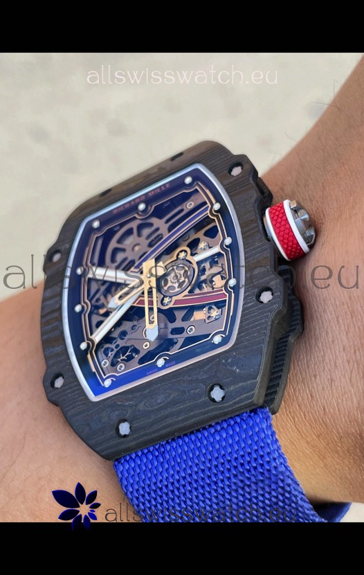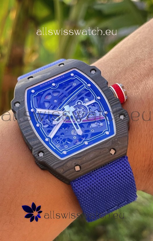 You're reviewing: Richard Mille Super Clone RM67-02 Sebastien Ogier Black Carbon TPT 37 Grams Watch Blue Strap