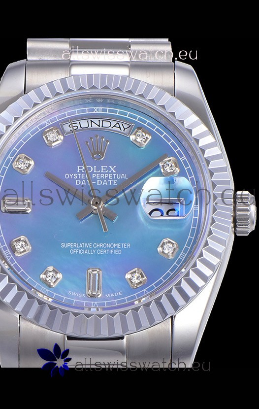 Rolex Day Date Watch in Blue Dial with Diamonds Hour Numerals ETA Movement - 904L Steel