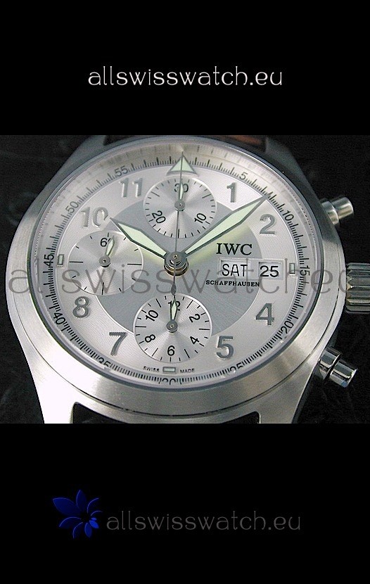 IWC Der Flieger Chronograph Swiss Replica Watch in Silver White Dial