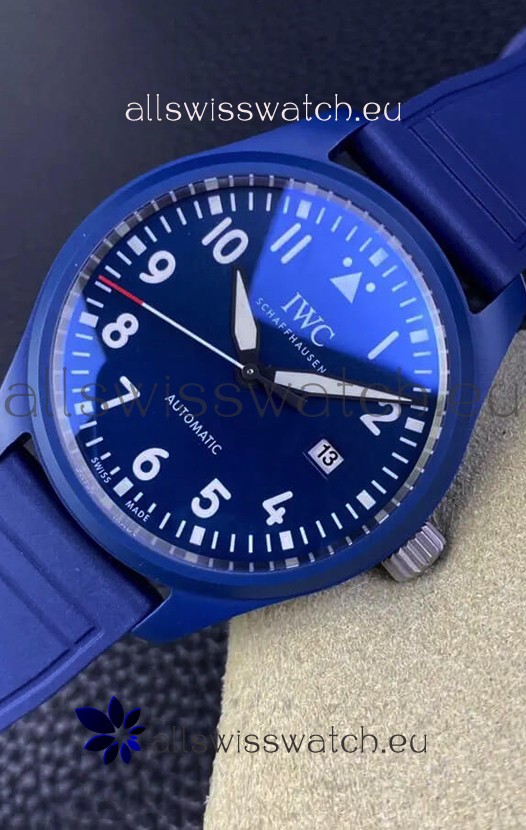 High Quality Blue Rubber Strap with Tang Buckle complete with IWC Markings and Engravings