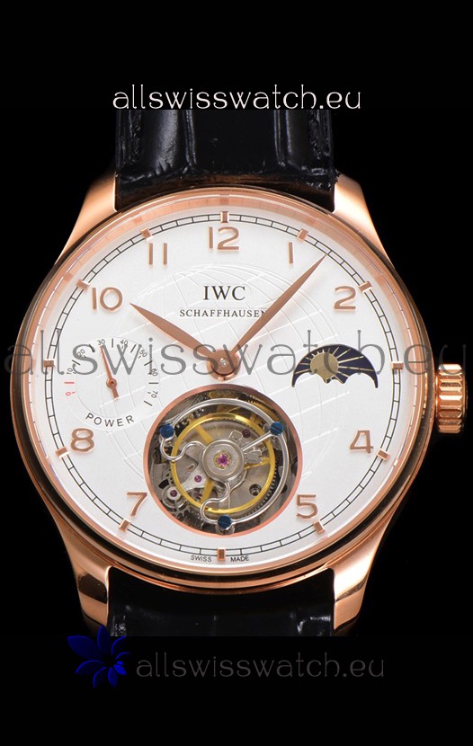 IWC Portugese Hand-Wound Genuine Tourbillon White Dial Rose Gold Casing Swiss Replica Watch