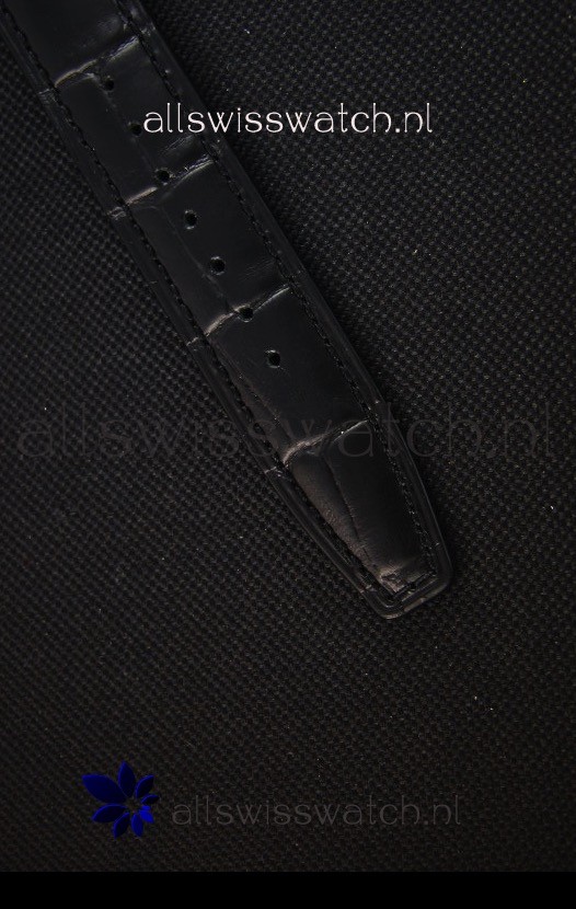 Genuine Black Strap with IWC markings and engravings with Polished Stainless Steel Deployment Clasp