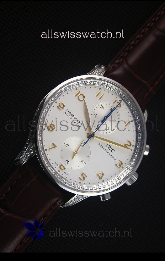 IWC Portuguese Chronograph Stainless Steel with Diamonds 1:1 Mirror Replica Watch