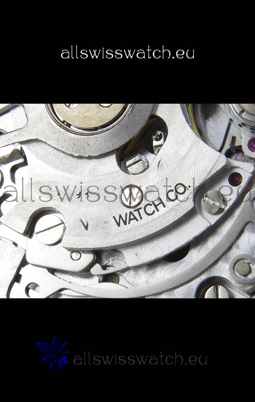 Base 7750 Movement Modified to Resemble the IWC 69385 Movement. Platinum Decodated Plate and Rotors. The Most Identical Machinery setup when compared with the Originals.