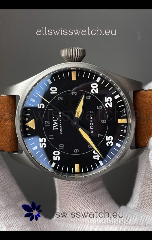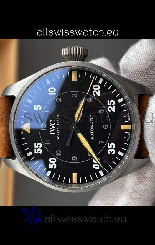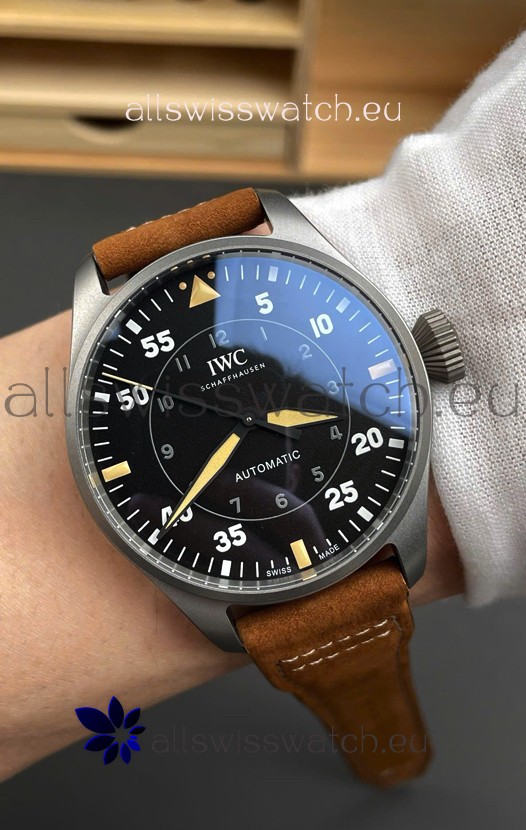 IWC Super Clone Spitfire Black Dial Titanium Swiss Replica Watch
