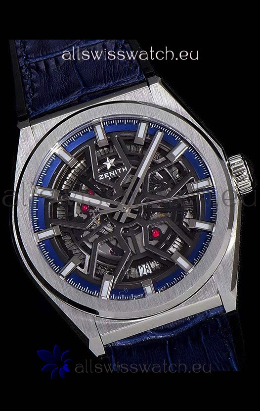 You're reviewing: Zenith Defy Classic Skeleton 41 mm Titanium Men's Swiss Replica Watch - Blue Leather Strap