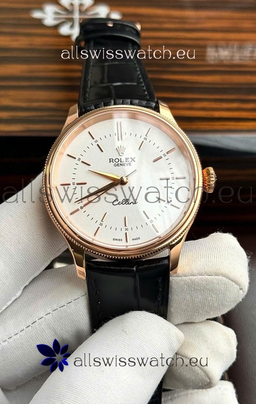 Rolex Cellini Date Ref#50505 Replica 1:1 Mirror Rose Gold Steel White Dial Watch