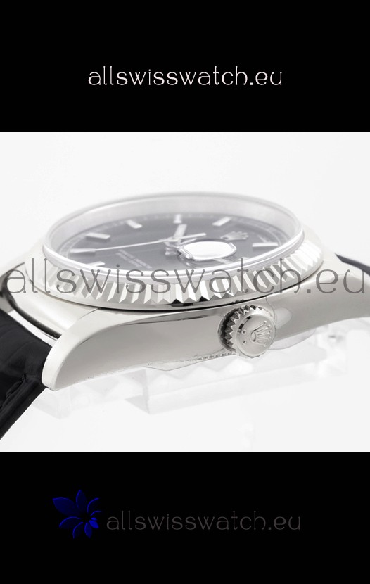 Rolex Day Date 904L Steel Casing Watch in Black Dial 36MM - 1:1 Mirror Quality