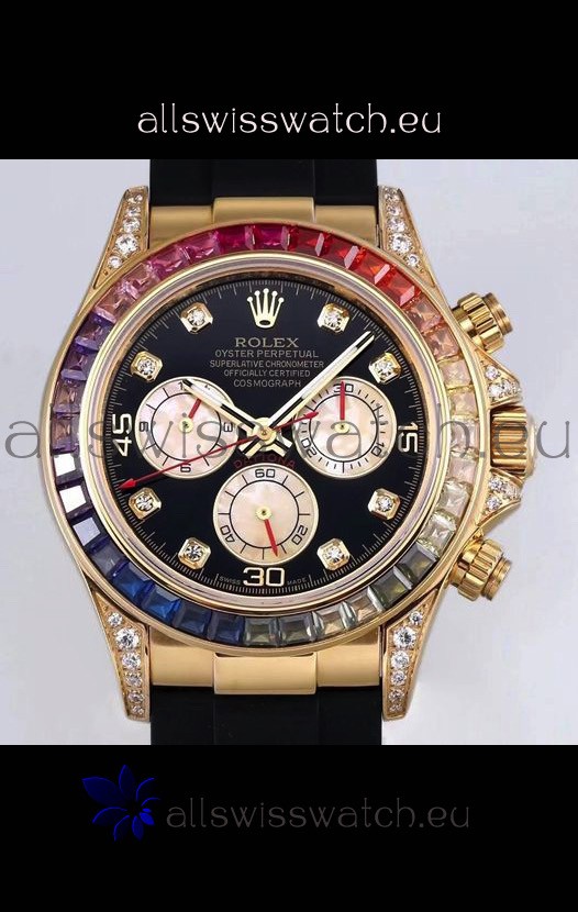 High Quality Cut Multicolored Bezel as per the original, Gemstones coloring is on par with the Originals