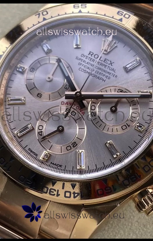 The Best Rolex Daytona Model Replicated up to Date. The First Rolex model to adopt a 904L Steel on Casing and Strap which is the same steel used by Rolex. Compared with an Original Side by Side and there were NO Differences Whatsoever. Complete list of details have been stated below and you will see that tremendous amount of detaiing and work has been put into this edition.