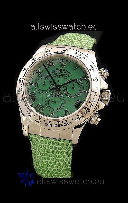 You're reviewing: Rolex Daytona Cosmograph Swiss Replica Steel Watch in Green Pearl Dial