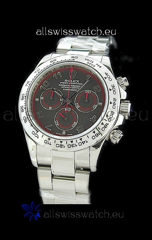 Rolex Daytona Cosmograph Swiss Replica Steel Watch in Red Subdial
