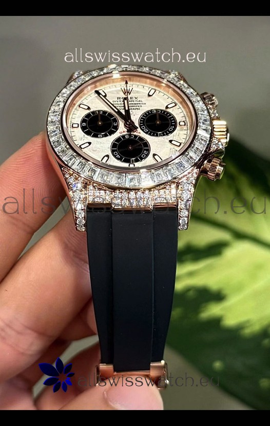 You're reviewing: Rolex Daytona Super Clone White Gold Casing Meteorite Dial Cal.4131 Movement Watch Custom Sapphires Bezel