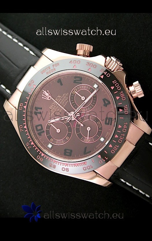 Rolex Oyster Daytona Cosmograph Swiss Replica Rose Gold Watch in Brown Dial