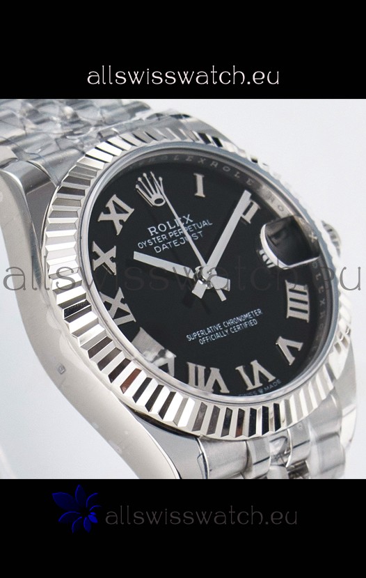 Rolex Super Clone Datejust ETA 2688 Movement 31MM Stainless Steel Black Roman Dial Watch