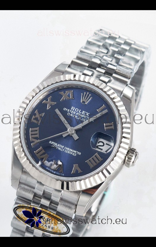 Rolex Super Clone Datejust ETA 2688 Movement 31MM Stainless Steel Blue Roman Dial Watch