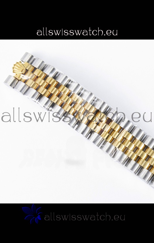 18K Rose Yellow Plating on 904L Stainless Steel strap with New Style Rolesor Deployant Buckle, End links match up Flush with the Case. - A Much Improved Datejust Strap Version