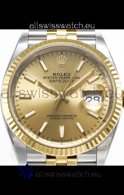 Rolex Super Clone Datejust ETA 3235 Movement 36MM Two Tone Yellow Gold Swiss Gold Dial