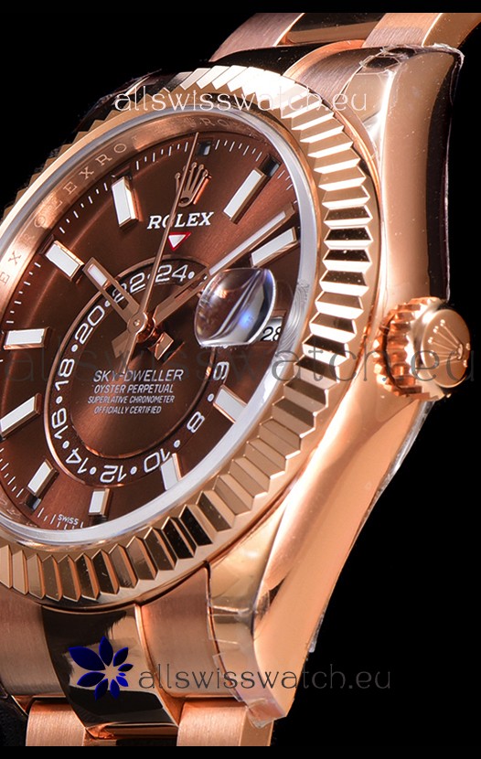 You're reviewing: Rolex Sky-Dweller REF# 336235 Brown Dial Watch in Rose Gold 904L Steel Case 1:1 Mirror Replica