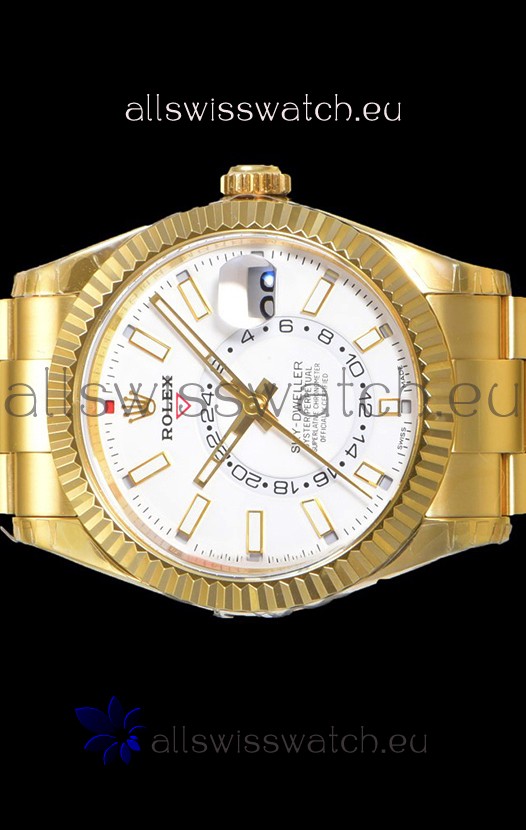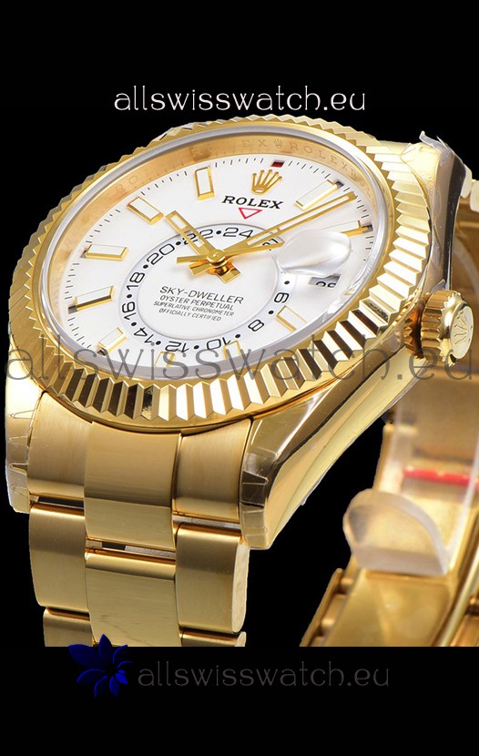 Rolex Sky-Dweller REF# 336235 White Dial Watch in Yellow Gold 904L Steel Case 1:1 Mirror Replica