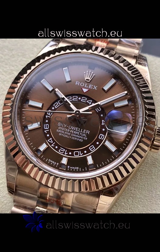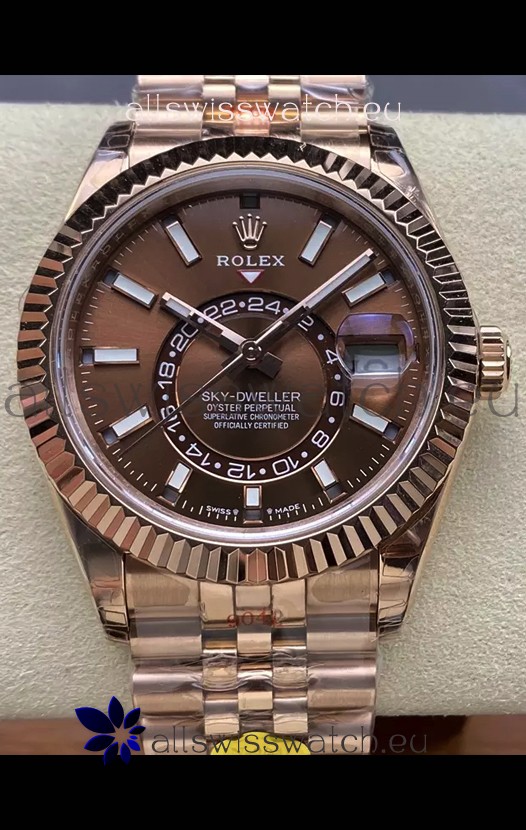 Rolex Sky-Dweller REF# 336935 Brown Dial Watch in Rose Gold 904L Steel Case 1:1 Mirror Replica